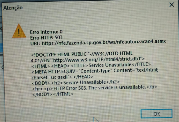 Esse erro acontece quando o sistema nao consegue uma comunicação com sefaz, geralmente por indisponibilidade dos servidores ou instabilidade na conxao de internet