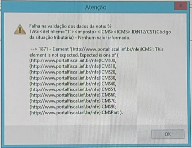Erro na validação dos dados da nota - Codigo da situação tributaria