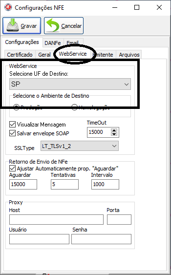 Na baba Webservice, selecione UF de destino: selecione o estado do cliente