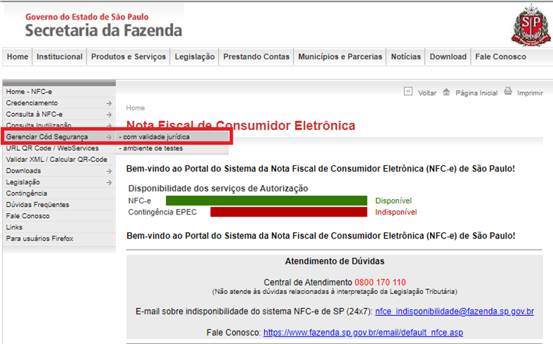 6-Depois de credenciar a empresa, feche o link e acesse-o novamente (https://www.nfce.fazenda.sp.gov.br/NFCePortal)