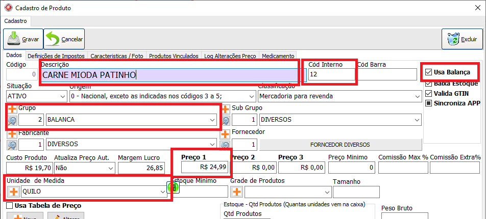 PREÇO 1: Preço de Venda Padão do KG ou UN.