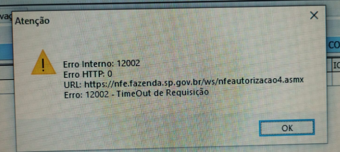 Esse erro acontece qndo o sistema nao consegue comunicar com o servidor da sefaz