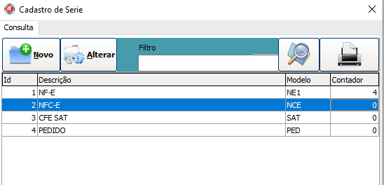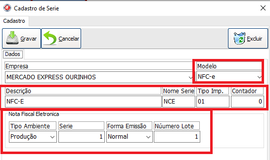 Pesquise e localize a serie NFC-E, clica 2x para editar e confirme se a configuração esta igual: