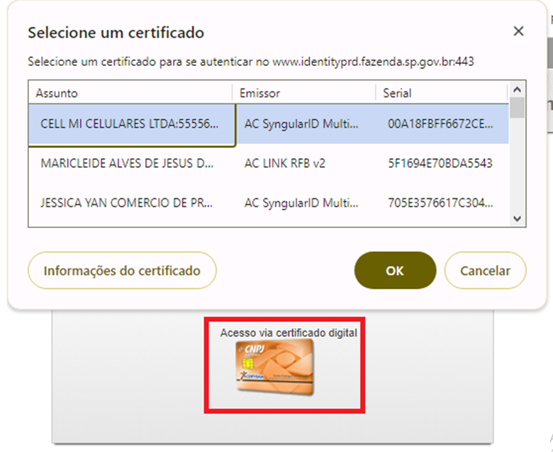 8-Selecione o certificado do contribuinte (cliente)