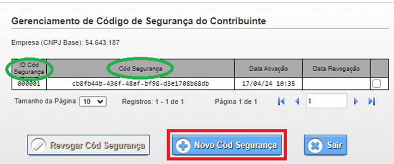 10-Clique em “Novo Cód Segurança” para gerar o CSC e Token